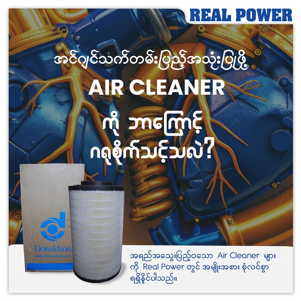 အချိန်မီလဲပေးပြီး ရေရှည်ကုန်ကျစရိတ်သက်သာအောင် ပြုလုပ်နိုင်ပါတယ်။ အင်ဂျင်စွမ်းဆောင်ရည်ကောင်းမွန်ပြီး သက်တမ်းပြည့်အသုံးပြုနိုင်ရန်အတွက် 𝗥𝗲𝗮𝗹 𝗣𝗼𝘄𝗲𝗿 မှရောင်းချနေသည့် အရည်အသွေးမြင့် 𝗗𝗼𝗻𝗮𝗹𝗱𝘀𝗼𝗻 𝗔𝗶𝗿 𝗖𝗹𝗲𝗮𝗻𝗲𝗿 များကို ဝယ်ယူ အသုံးပြုလိုက်ပါ ![]()
