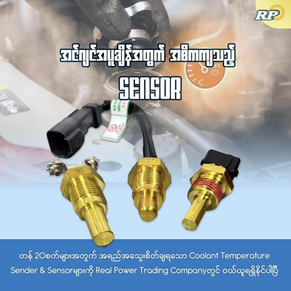 𝗖𝗼𝗼𝗹𝗮𝗻𝘁 𝗧𝗲𝗺𝗽𝗲𝗿𝗮𝘁𝘂𝗿𝗲 𝗦𝗲𝗻𝗱𝗲𝗿 & 𝗦𝗲𝗻𝘀𝗼𝗿မှာ အများအားဖြင့် Thermostat အနီးတွင်တပ်ဆင်ကြပါသည်။ ရေအပူချိန် အနိမ့်အမြင့် အပူအအေးပေါ်မူတည်၍ Sensor၏ Signalများပြောင်းလဲကာ Controllerသို့ ပေးပို့ပါသည်။ Controllerမှာ ထိုပေးပို့သော Signalအပေါ်မူတည်၍ တွက်ချက်ကာ စက်၏ Monitorတွင် ပြသပေးပါသည်။ အင်ဂျင်တစ်လုံးသည် ပူမှန်အပူချိန် 90 ဒီဂရီဝန်းကျင်သာရှိရမည်ဖြစ်ပြီး ၁၀၀ ဒီဂရီ အထက်ရောက်ရှိပါက အပူလွန်ကဲ Over Heatဖြစ်နေသည်ဟု ယူဆနိုင်ပါသည်။ အင်ဂျင်ကို ပုံမှန်မောင်းနှင်နိုင်သည့် အပူချိန်တွင်ရှိနေစေရန် Thermostatကို တပ်ဆင်ထားကြပြီး ထိုအပူအချိန်များကို Coolant Temperature Sensorမှဖတ်ရှု့ကာ အချိန်နှင့်အမျှ Engine Controller သို့ ပေးပို့ပါသည်။ ရေလည်ပါတ်မှု မမှန်ကန်ခြင်းကြောင့် အပူချိန် တက်တတ်ပြီး Sensorမကောင်း၍လည်း Monitorတွင် အပူချိန်တက်ကြောင်းကို မှားယွင်းကာ ပြသတတ်ပါသည်။ အင်ဂျင်အပူချိန်တက်နေကြောင်း ထို Sensor မှ Controllerသို့ပေးပို့ကာ အင်ဂျင်၏ အပတ်ရေများကို လျှော့ချပြီး ထိန်းချုပ်ပေးပါသည်။ အင်ဂျင်အလွန်အေးလွန်းနေပါက အင်ဂျင်၏မီးပေါက်မှုများမှာ လေးလံစွာလှုပ်ရှားရမည်ဖြစ်ပြီး အလွန်ပူလွန်းပါကလည်း ထိုမီးပေါက်ခန်းနှင့် ဆက်စပ်နေသော Piston၊ Liner၊ Exhaust Inlet Valveများနှင့် Engine Head မျက်နှာပြင်များစွာ လောင်ကျွမ်း ပျက်စီးနိုင်ပါသည်။ Coolant Temperature Sensor ကောင်းမွန်ရန်အလွန်အရေးကြီးပြီး ပျက်စီးခြင်း၊ Signalမှားခြင်းဖြစ်ပေါ်ပါကလည်း အမြန်ဆုံး လဲလှယ်တပ်ဆင်ပေးရပါမည်။ အင်ဂျင် အပူချိန်မှာ အလွန်အရေးကြီး၍ စက်၏ ရှေ့ Screen Monitorတွင် ဖော်ပြထားပါသည်။