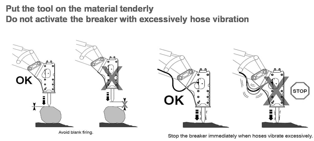 Hydraulic Breaker Operations (ဟိုက်ဒရောလစ်ဘရိကာလုပ်ဆောင်ရာတွင် သတိပြုသင့်သော အချက်များ)